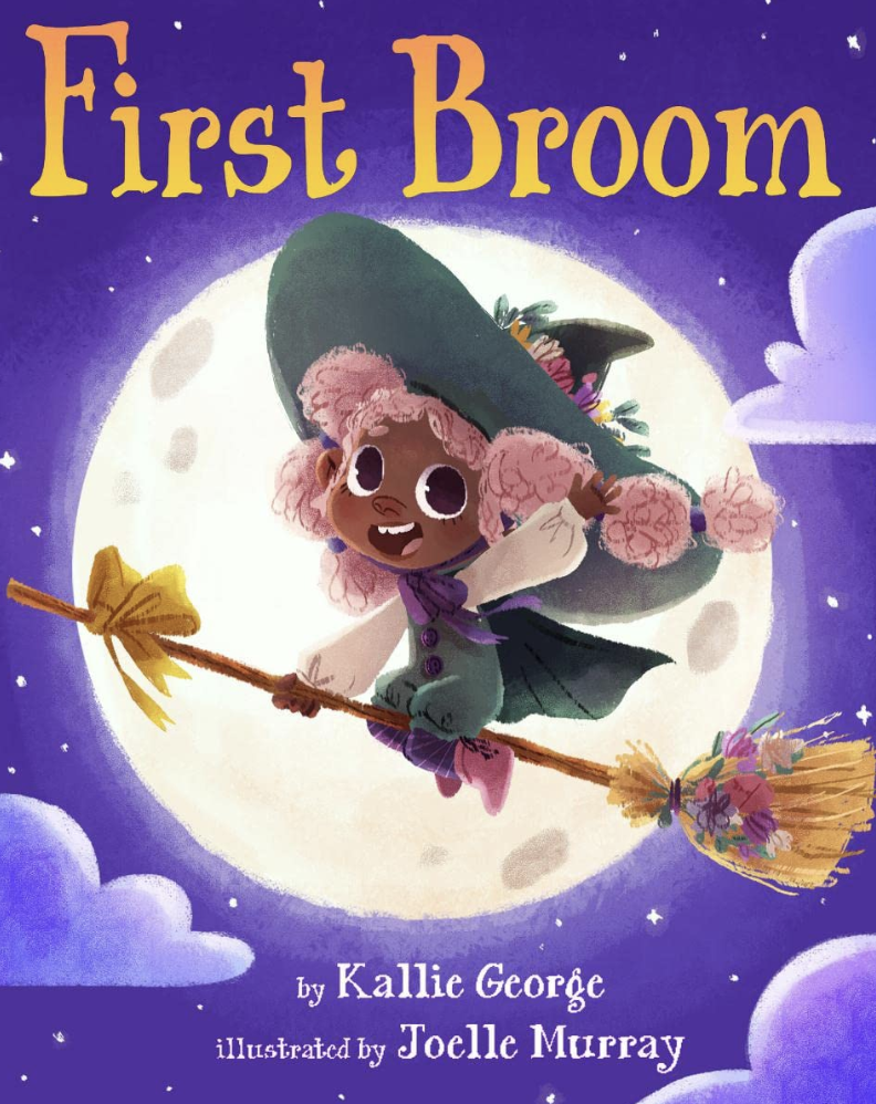 8. First Broom by Kallie George and illustrated by Joelle Murray. A sweet, lyrical story about a young witch learning to ride her first broom.
