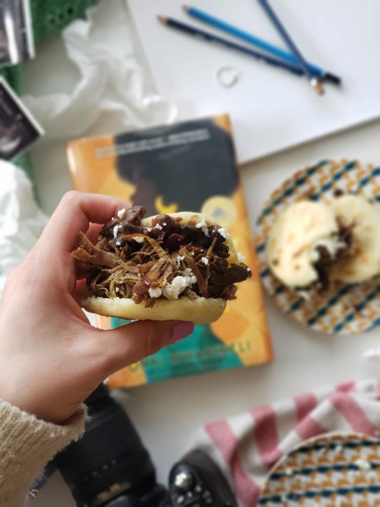 In Someday, Maybe by Onyi Nwabinelli, Eve is mourning the loss of her husband. One day, a new friend who is more of a casual acquaintance buys Eve beef and black bean arepas. The food is both nourishing and comforting, exactly what Eve needs.